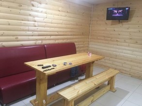 Основной зал оборудован удобным столом и мягким диваном, где будет здорово организовать душевные посиделки в кругу семьи или друзей. Для этого гости могут принести еду и напитки с собой, либо заказать блюда из ресторана. Для развлечений предусмотрено караоке с большим выбором песен, DVD-проигрыватель, аудиосистема, плазменный экран с телевидением для просмотра спортивных матчей.