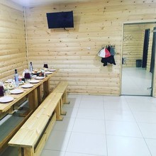 Здание комплекса построено из экологически чистого материала - сруба натурального дерева. Внутри интерьер в русском стиле, баня на шесть человек, душевые кабины с обливочным ведром, уютная комната отдыха с комфортной кроватью.